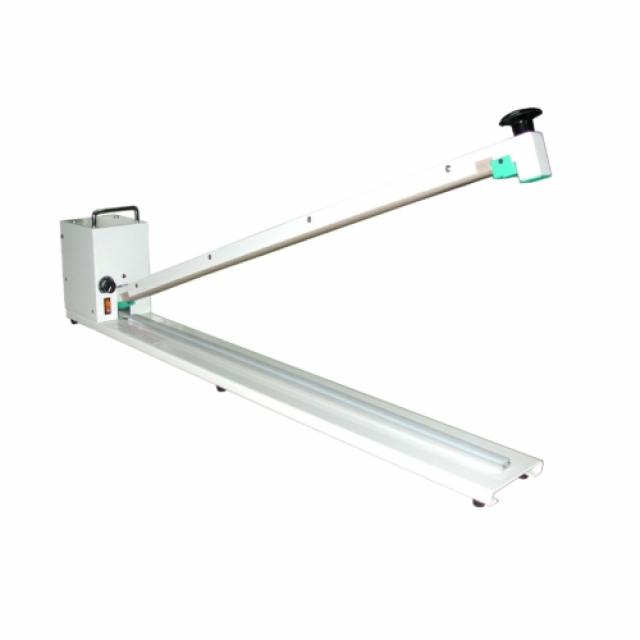 Extra hosszú asztali karos impulzushegesztő, mely alkalmas nagyméretű termékek csomagolásához. Sima hegesztőszálas kivitelű.