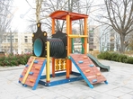 Elemei: torony, 2 db rézsűs taposófás rámpa, amőbajáték, beülőkaros üvegszálas csúszda, bújócső Korcsoport: óvodás, iskolás Területigény: 8,5x5 m Esésmagasság: 0,99 m, ezért ütéscsillapító...