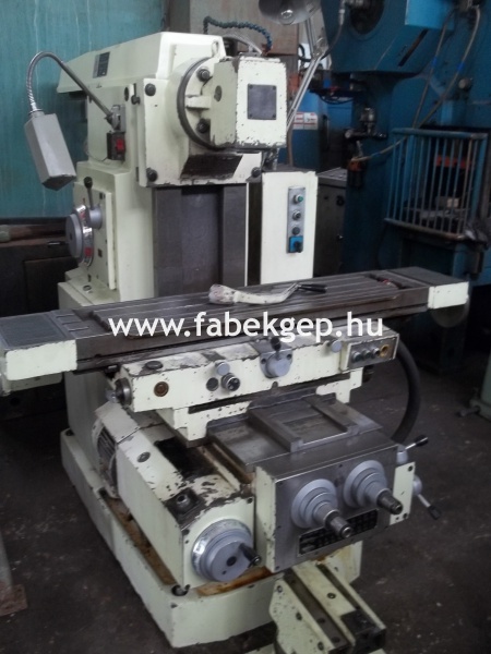 Asztal méret 900x250mm, asztal mozgások: ki-be 250mm, jobb-bal 700mm, aláférhetőség 400mm. Fordulatok 63-1600 ig , előtolás 16 1200 ig. A vertikál fej morse 4-es kúp.