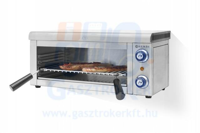 Hendi 264300 Szalamander 800 Rozsdamentes acél külső-belső burkolat. Felső fűtőelemmel Kihúzható, 4 magassági fokozatban állítható sütőrács. Termosztatikus hőmérséklet szabályozással. Gyors...