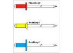 Szabványos, DIN 7337 szerint különbözõ méretû és anyagminõségû nyitott húzószegecsek, RAL szinekkel festve. Előnye a szegecselendő alkatrészhez való színbeli igazodás, kiváló minőségű kétkomponensű...