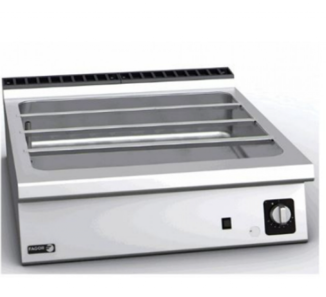 GN edény nem tartozék! AISI 304 (18/10) minőségű rozsdamentes acél kivitel. -Medence kapacitása: GN 1/1-150 Rozsdamentes fűtőtestek. -Kézi vízfeltöltés. -Vízleeresztő csap. -Termosztatikus...
