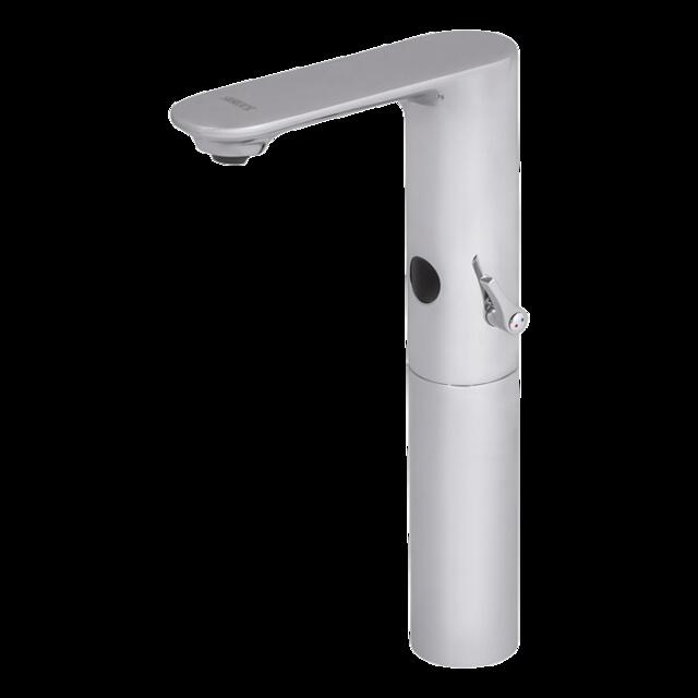 Infravezérlésű (szenzoros, érintésmentes) csaptelep kivehető keverővel, hálózati 24 V DC takarékos perlátor, a víz áramlási sebessége: 6 l/perc higiéniai öblítés a hőmérsékletszabályzó kar...