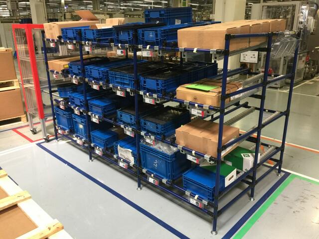 A görgős komissiózó állványok felállítása közvetlenül a szerelési hely mellett történik, hogy kéznél legyenek az aktuálisan használni kívánt alkatrészek. Segítségükkel a dolgozók közvetlenül karton-, vagy tárolódobozból komissiózhatnak, ezzel jelentősen felgyorsítva a munkafolyamatot.