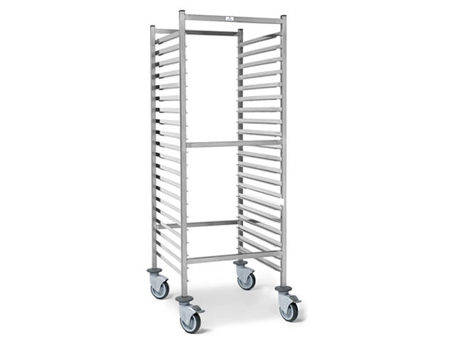 rozsdamentes acél, 18 GN 1/1 vagy 1/2 GN 36 tálcák, 4 x Ø 125 mm műanyag beálló kerék, 2
