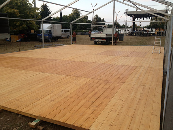 Ma már egyre több rendezvény kerül megrendezésre a természetben vagy hepehupás talajon. Ezeken a helyeken 1 - 2,5 méteres laminált fa burkolatú padló elemeket helyezünk el alumínium sínrendszerben a sátorban, ezzel kiküszöbölve a talajegyenetlenségeket. Előnyei, hogy szőnyegezhető, fix, masszív járófelület és esztétikus megjelenés.