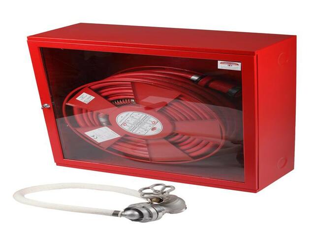 EN 671-1:2012 (E) szabványnak megfelelő, D-25-ös szerelvényeket tartalmazó - CE minősített - lemez- vagy üvegajtós (mélység: 260) tűzcsapszekrények, inox vagy inox előlapos változatban is. Felszereltség: kifordítható tömlőtartó dob 20 vagy 30 m fehér szövetborítású, vagy szövetborítású műanyag (LUX-ADS), vagy piros műanyag (LUX-ADST vagy LUX-ADTT) alaktartó tömlővel, D-25-ös többcélú sugárcső,...
